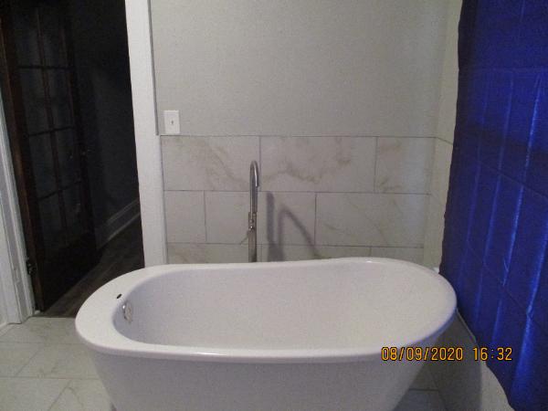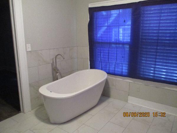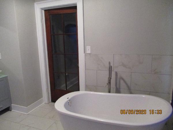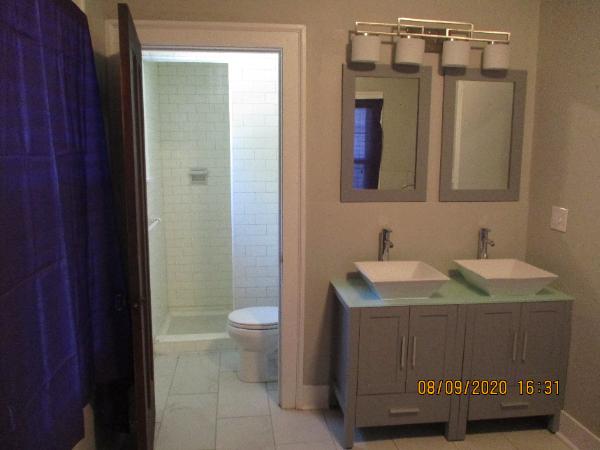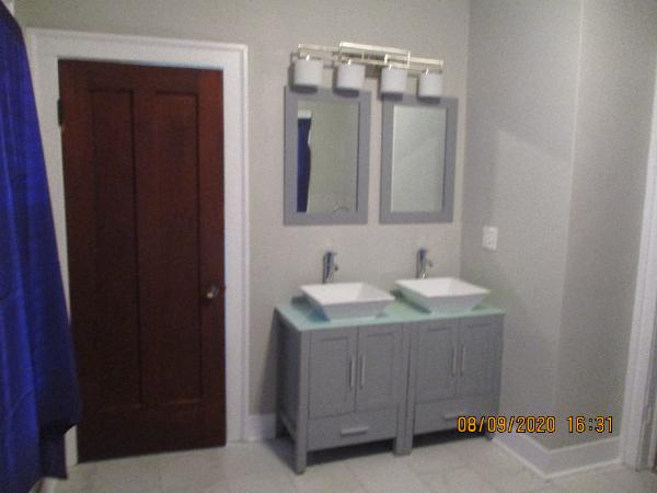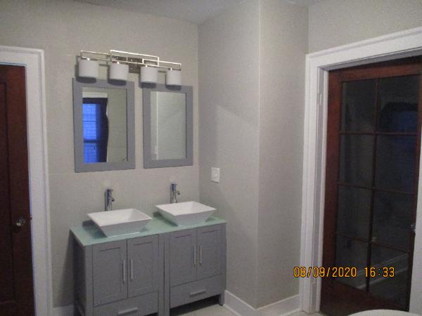 | Bath and sink are in a room that is 9'5" Ft. by 10'10" this does not include the toilet shower room. The Master bedroom has a bedroom ,walk in closet ,ensuite, bathing room and half bath. It is on the second floor ,half of the house and runs from front to rear of house. Nine full size windows and one small bath room window. |