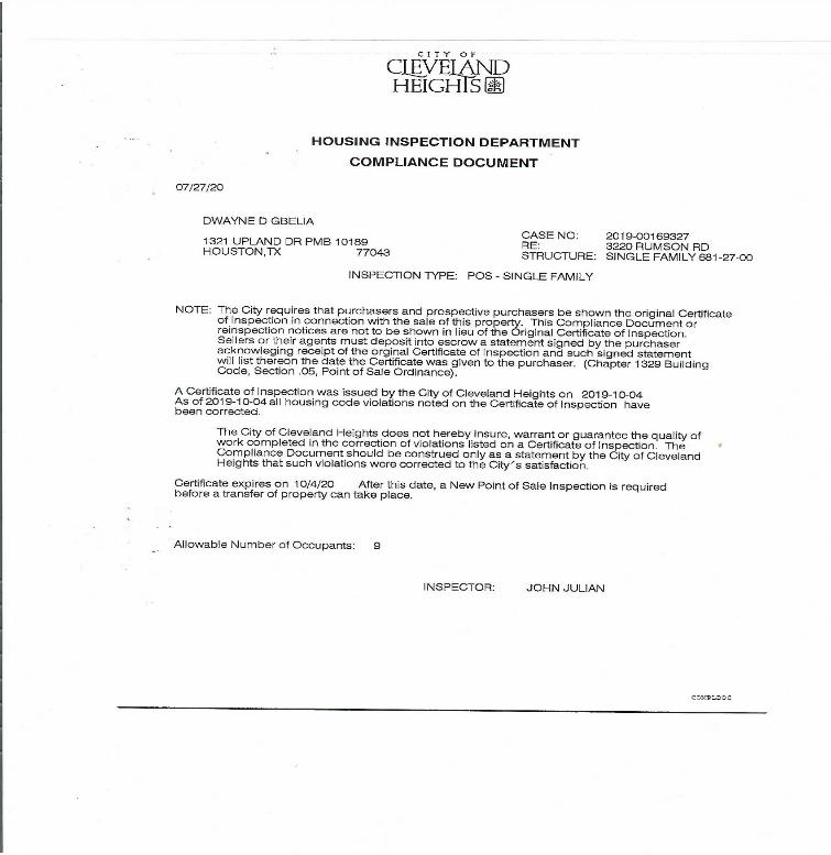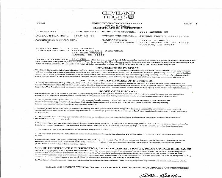 | Note that the POS for 2591 Lee Road was April 2019 and signed off as completed December 30,2019 ,this alone state the condition of the property as there are violations that were NOT completed! What happened the Sellers had more work and the comps would not support the list price,so they needed to dump it. |